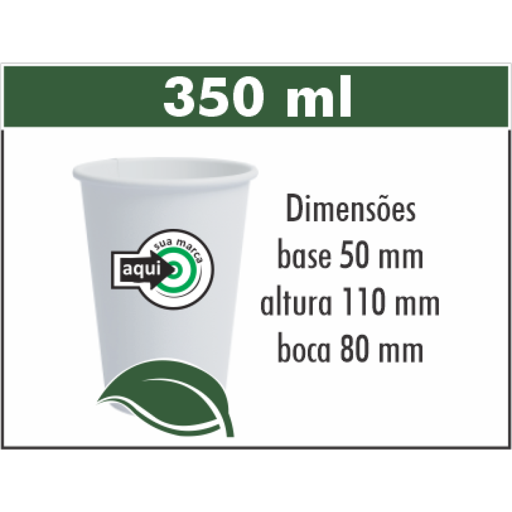 Feito de papel biodegradável, agrega mais valor às empresas que fazem esta escolha consciente. Suporta bebidas quentes e frias.